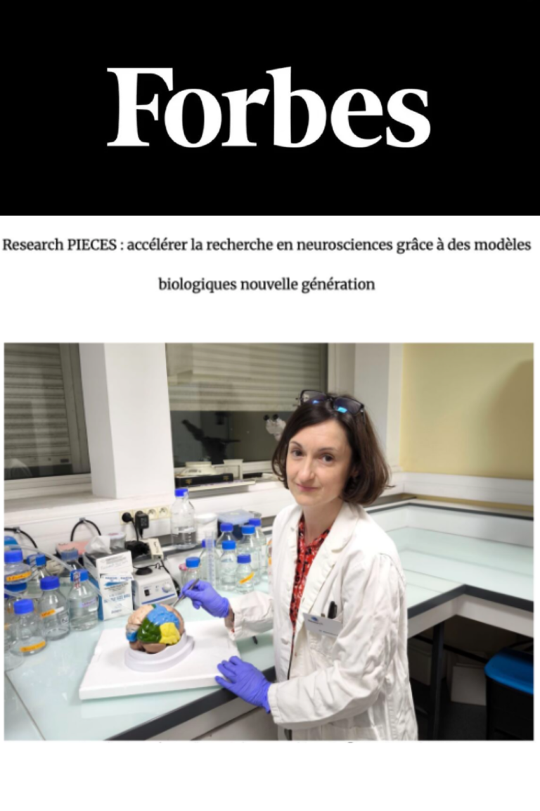 Research PIECES et notre Présidente, à l’honneur dans Le Forbes France dans un article intitulé : « Research PIECES : accélérer la recherche en neurosciences grâce à des modèles biologiques nouvelle génération »