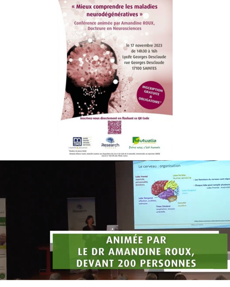 Conférence grand public sur le thème de "Mieux comprendre les maladies neurodégénératives" par le Dr. Amandine Roux organisée par Mutualia et la MSA des Charentes.